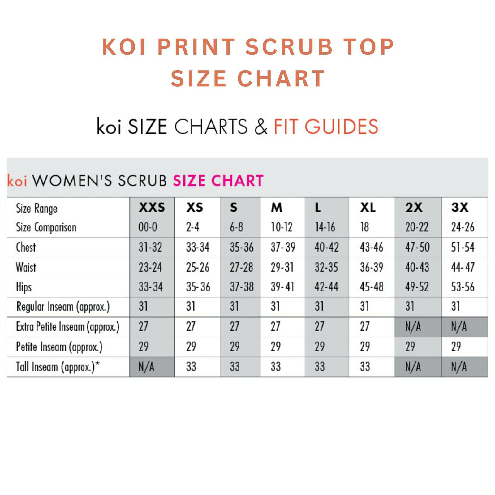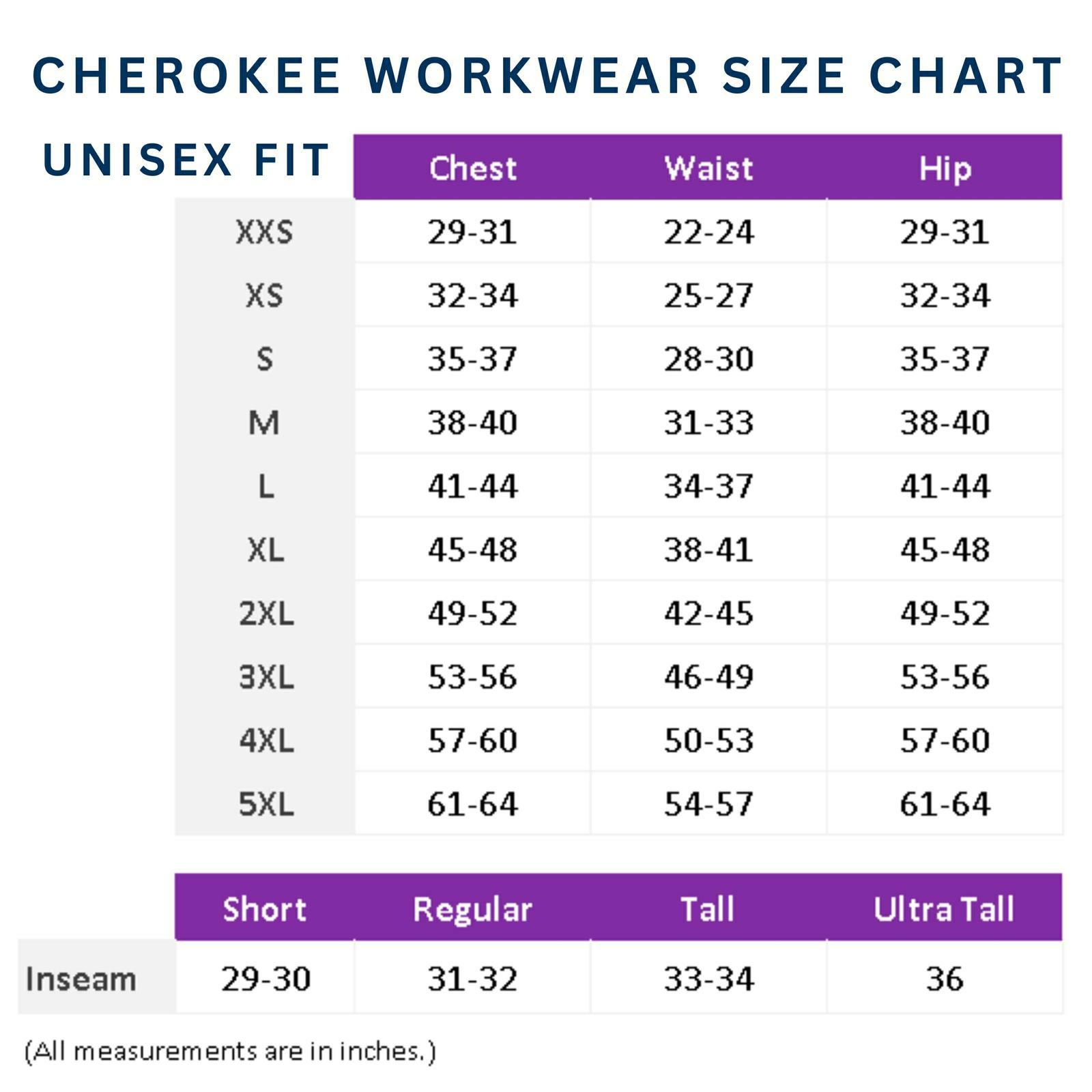 UNISEX CHEROKEE WORKWEAR SCRUBS, WOMEN'S CHEROKEE WORKWEAR JACKETS, & WOMEN'S KOI SCRUBS SIZE CHARTS